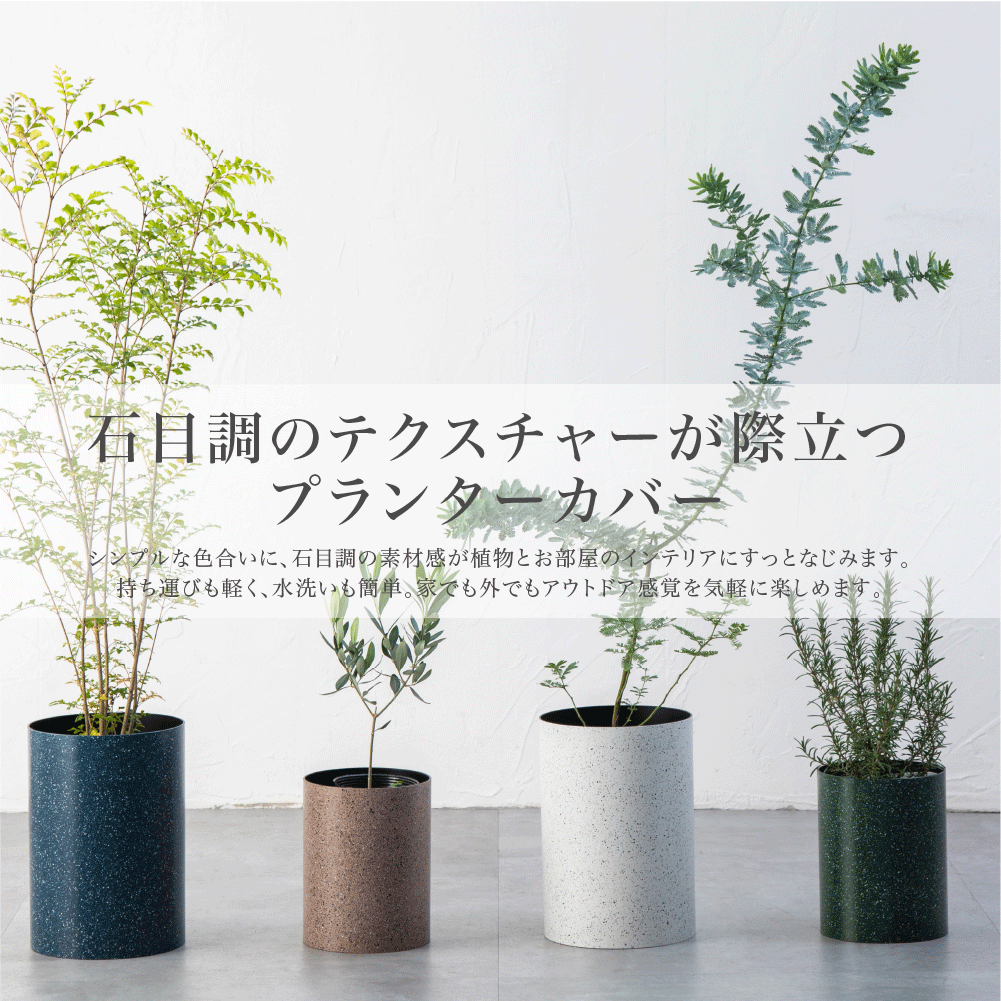シンプルな色合いに、石目調の素材感が植物とお部屋のインテリアにすっとなじみます。