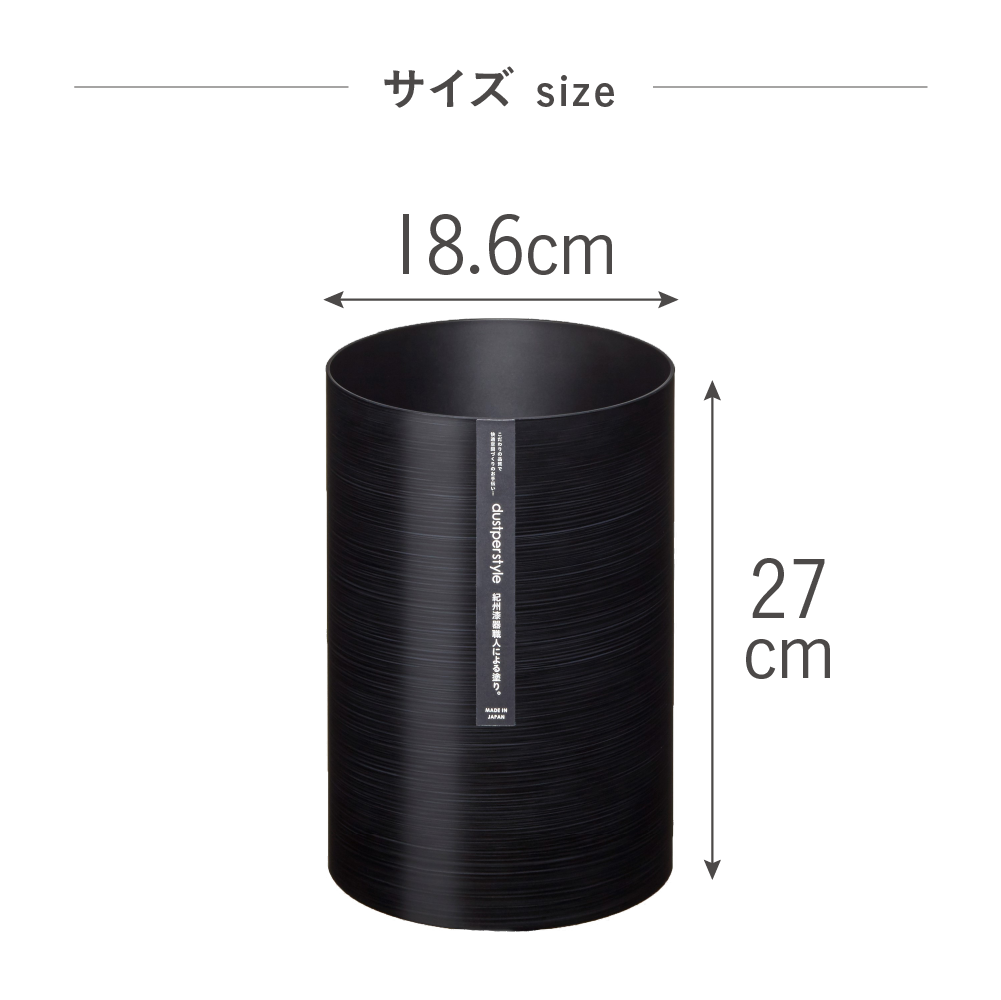 ダストボックスSサイズ :φ15.6×H20cm 容量3.4ℓ ダストボックスLサイズ :φ18.6×H27cm 容量6.8ℓ ダストボックスL用フタ :φ18.8×H3.6cm トイレブラシ :φ12×H36.3cm トイレポット :φ12×H21cm 容量1.4ℓ トイレブラシ交換用 :φ8×H35cm |