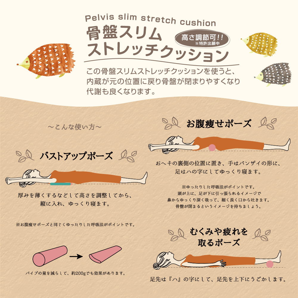 骨盤スリムクッションは、これを使うと内蔵が元の位置に戻り骨盤が閉まりやすくなり代謝も良くなります。