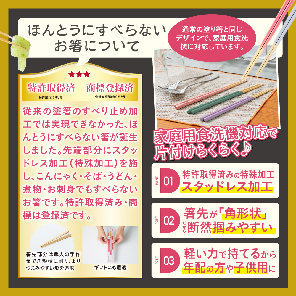 ほんとうにすべらないお箸