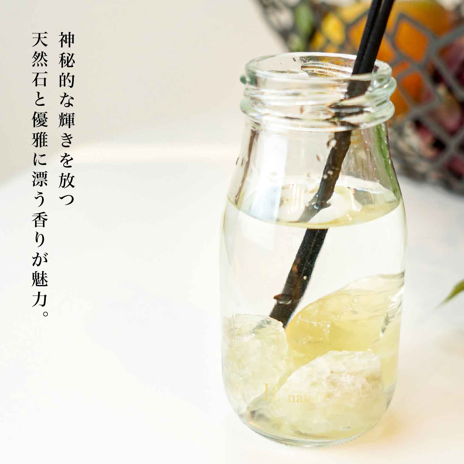 天然石の持つ自然のエネルギーが静かに広がり、ふわりと漂う香りとともに、心をほぐし、穏やかなひとときをもたらします。