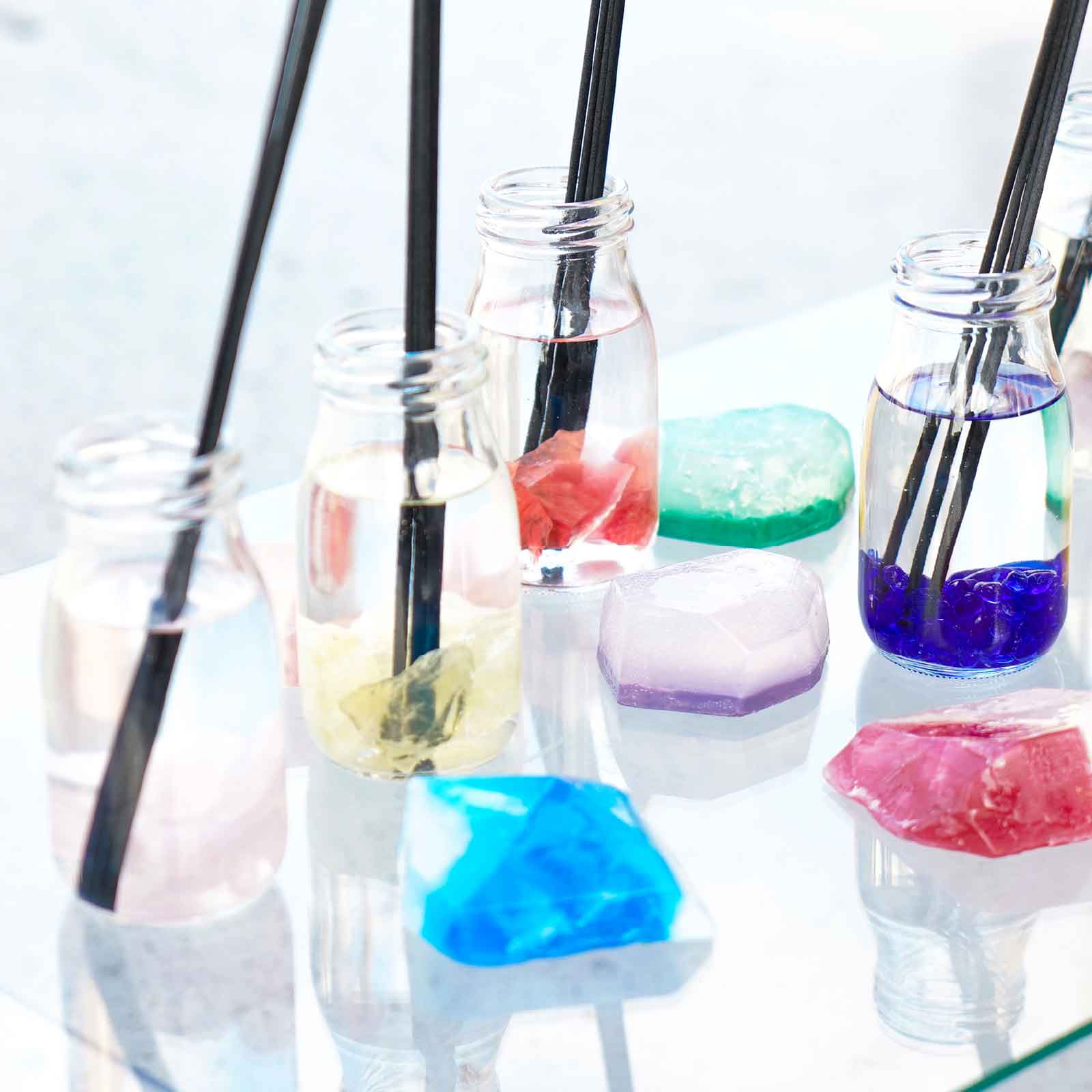 その後、溶液を注ぎ、ガラス容器にスティックを挿してください。